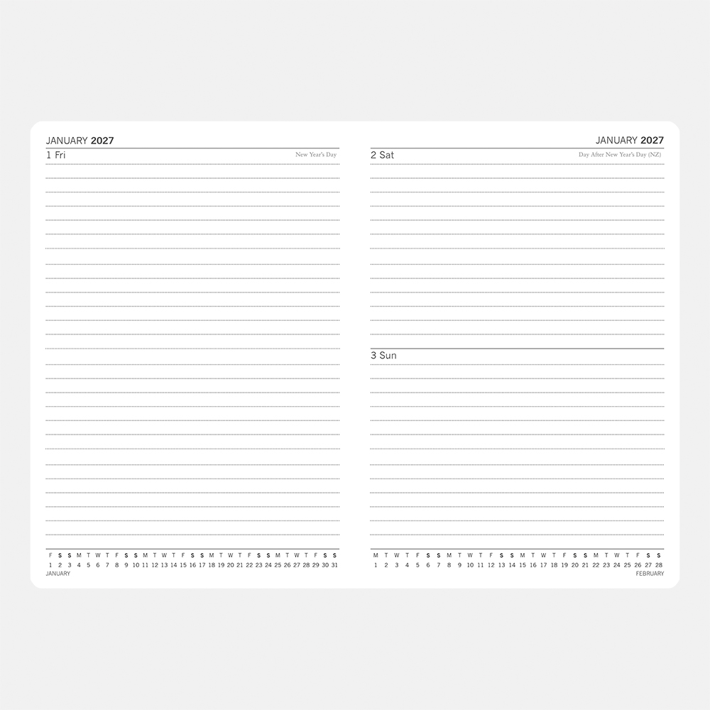 A5 Diary. A new format for 2027 with 320 pages including ribbon markers. Page per Day. Size: 217 x 153 x 25 mm