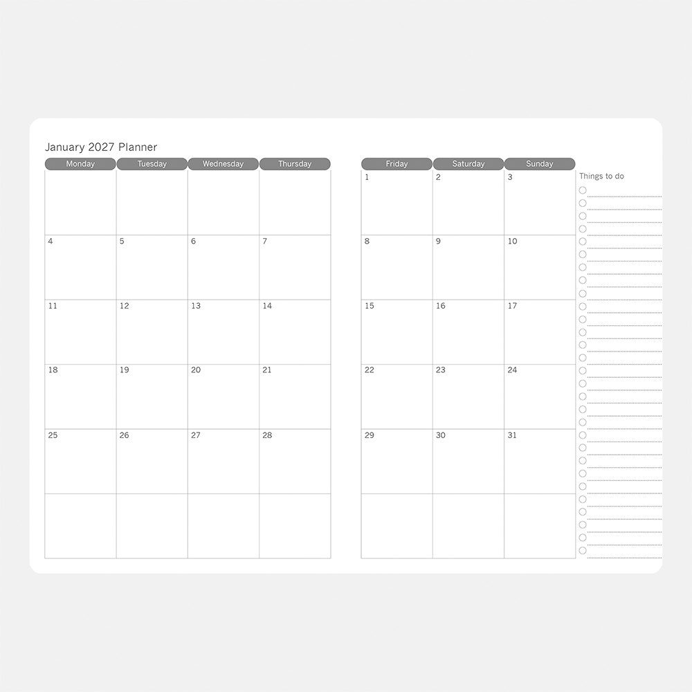 A5 Diary. A new format with 32 extra pages of content for 2027, now 160pp including ribbon markers. Week to View. Size: 217 x 153 x 25 mm