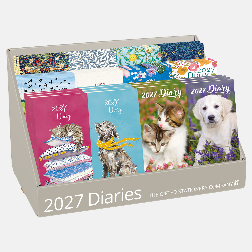Counter display unit prefilled with 48 Pocket Dairies. Includes 12 designs, 4 copies of each.