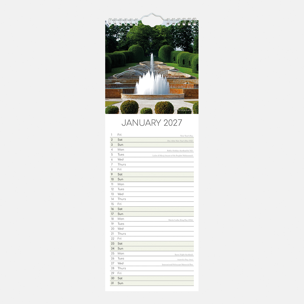 2027 Slimline Calendar – Beautiful Gardens