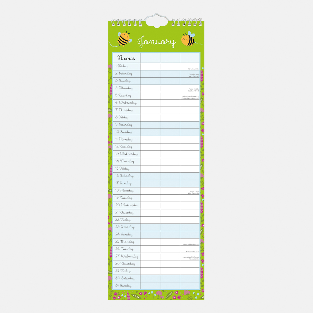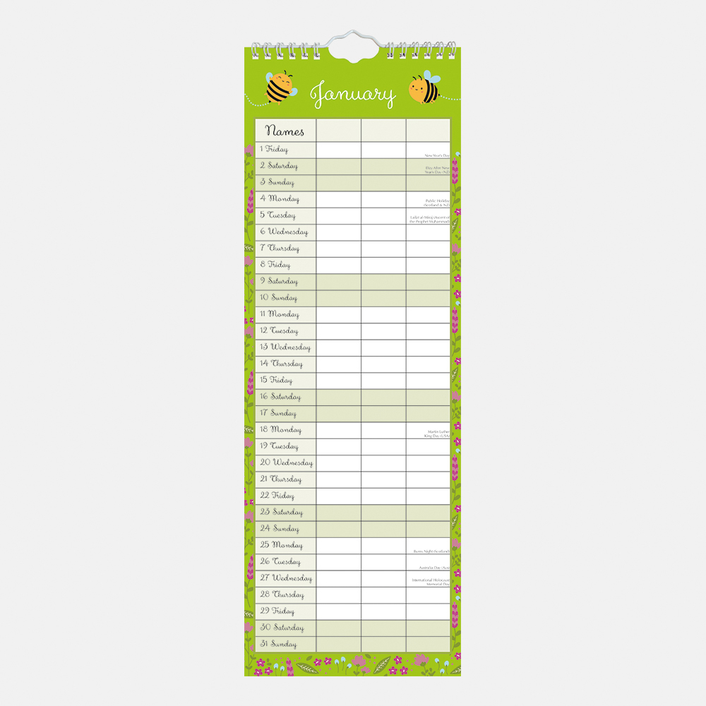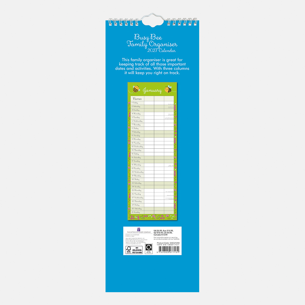 2027 Slimline Calendar – Busy Bee Family Organiser