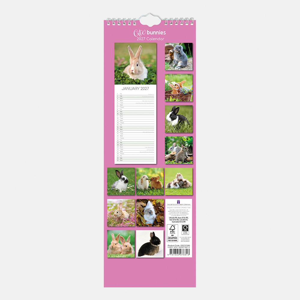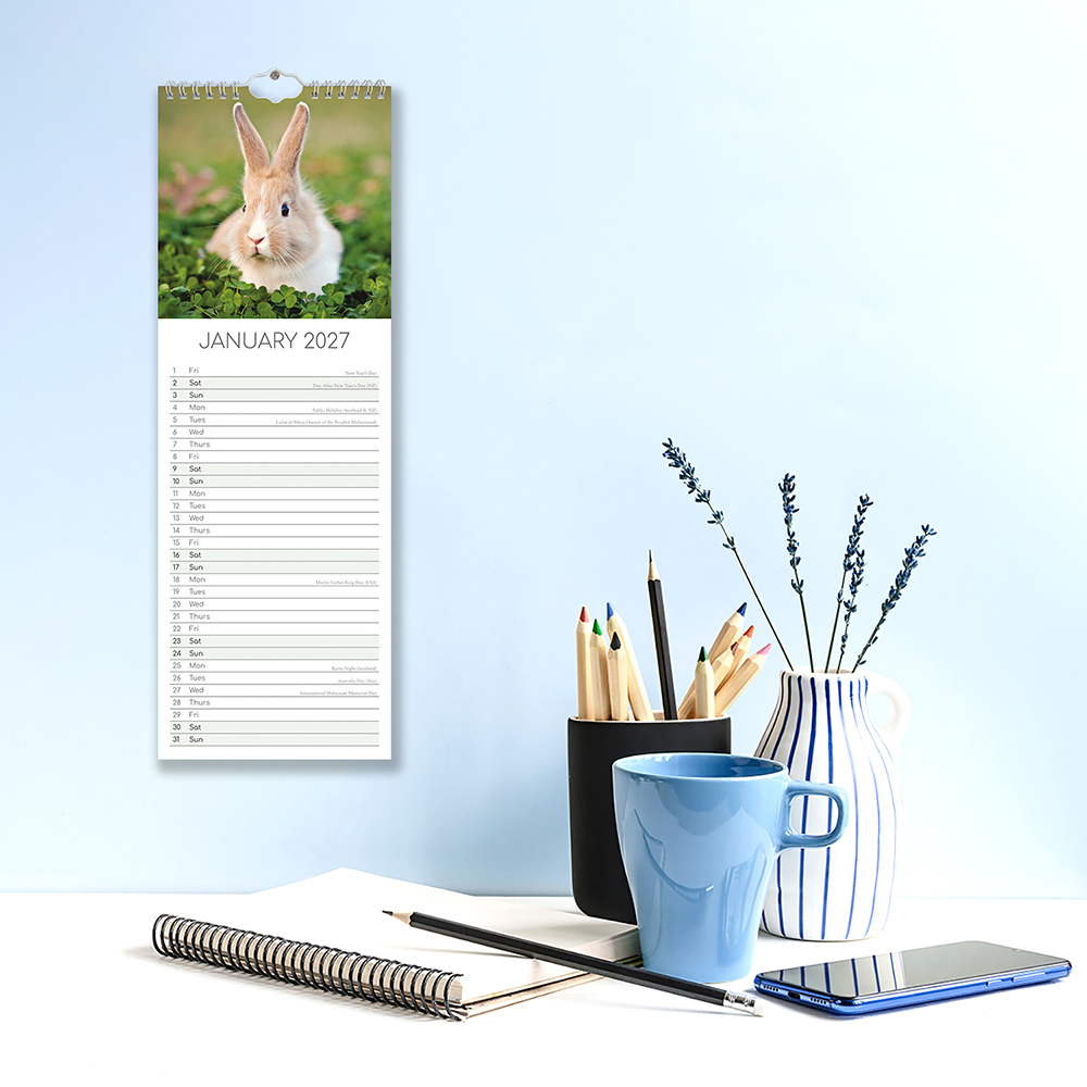 2027 Slimline Calendar – Cute Bunnies
