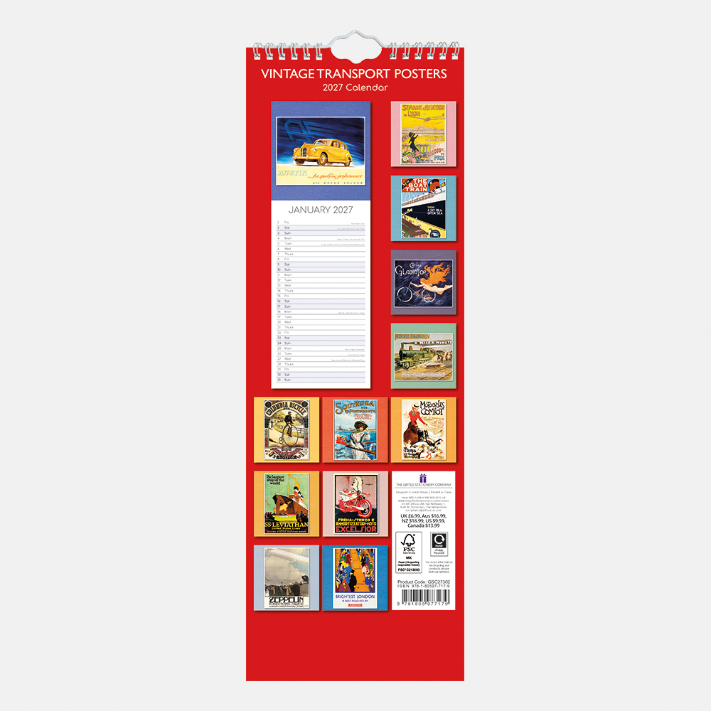 2027 Slimline Calendar – Vintage Transport Posters