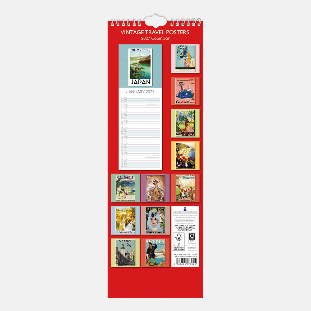 2027 Slimline Calendar – Vintage Travel Posters