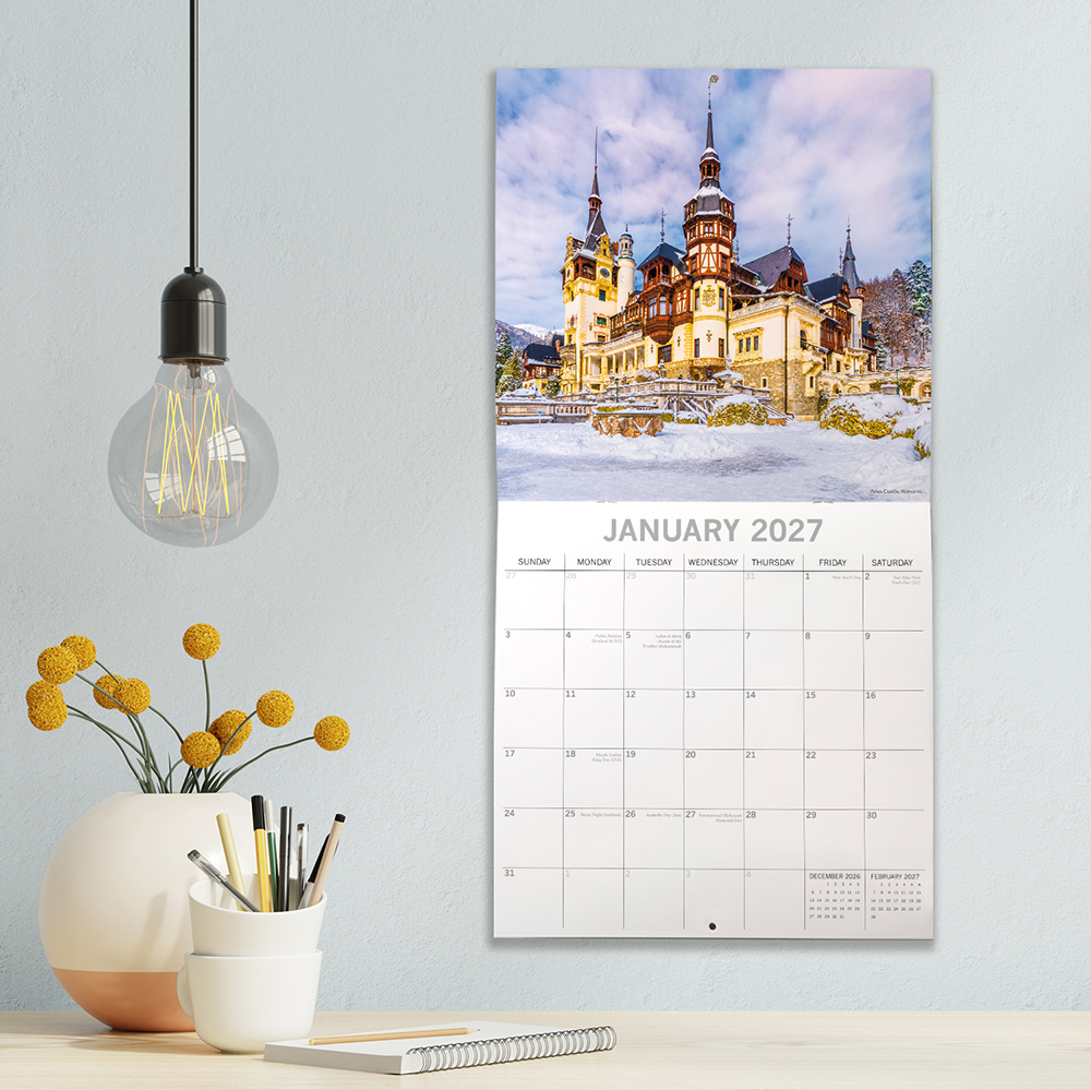 2027 Square Wall Calendar – Castles of the World