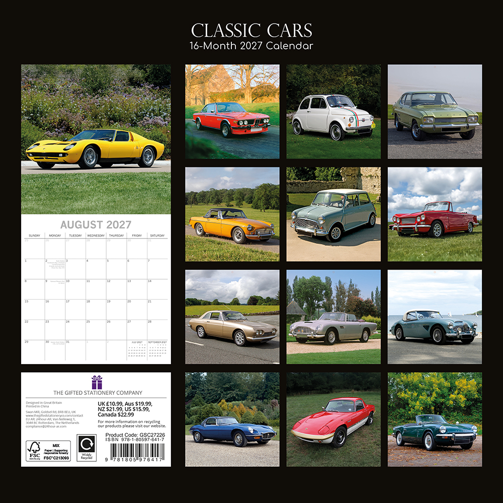 2027 Square Wall Calendar – Classic Cars