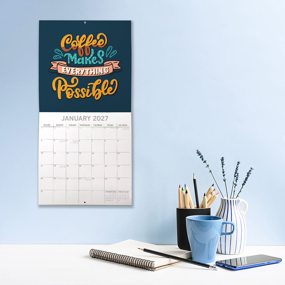 Wall Calendar. 100% Plastic free and 100% recyclable. Packaged in a 4 colour printed gift envelope Size: 305 x 305 mm