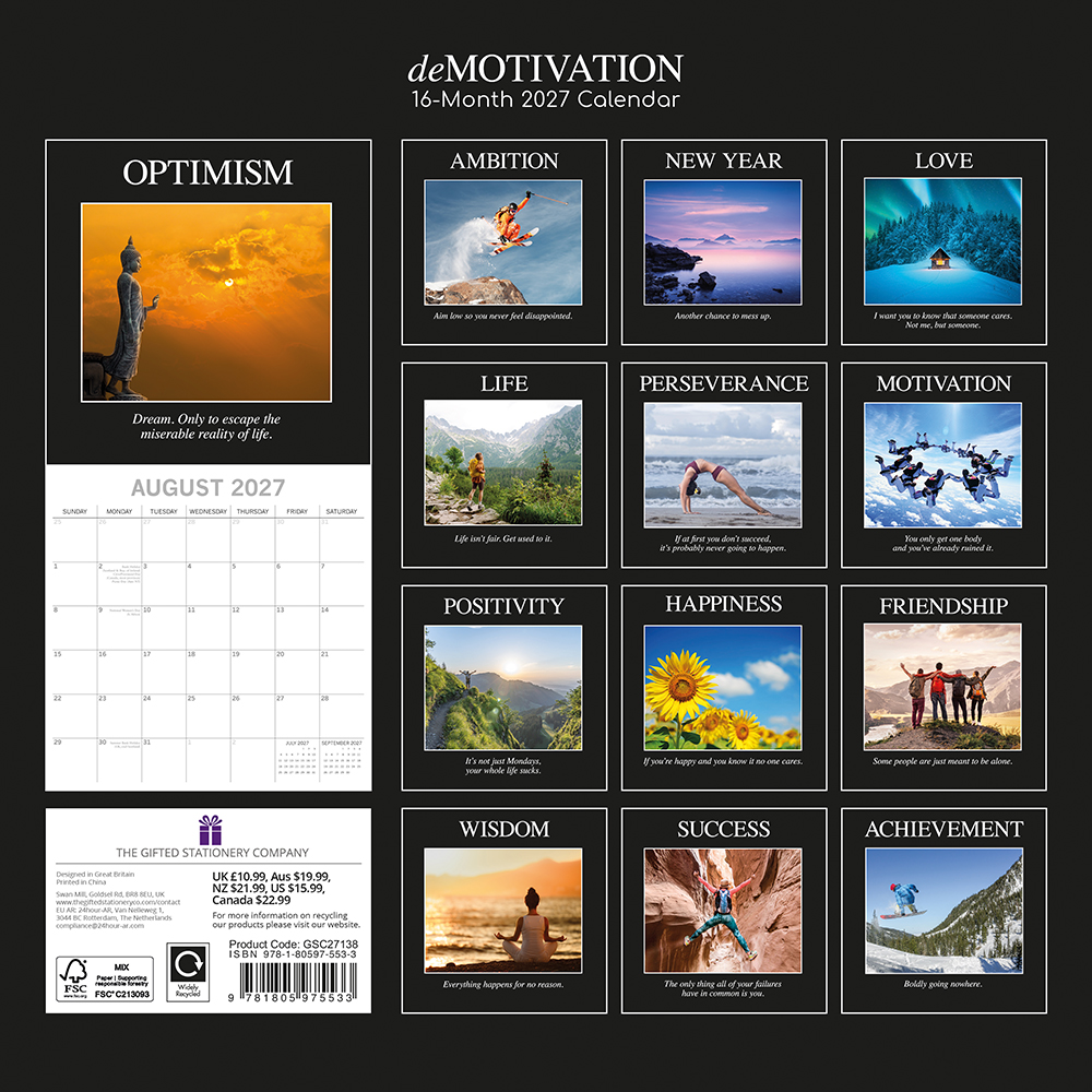 Wall Calendar. 100% Plastic free and 100% recyclable. Packaged in a 4 colour printed gift envelope Size: 305 x 305 mm
