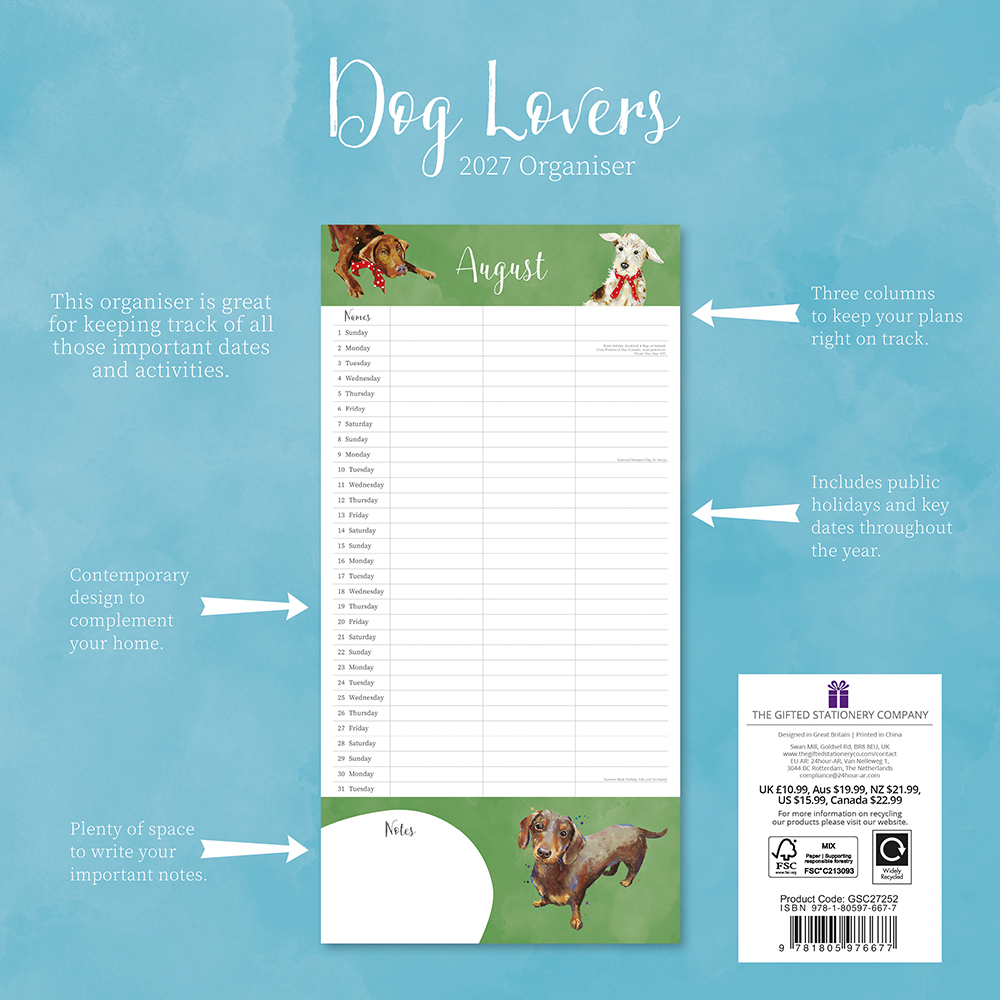 2027 Square Wall Calendar – Dog Lovers Organiser