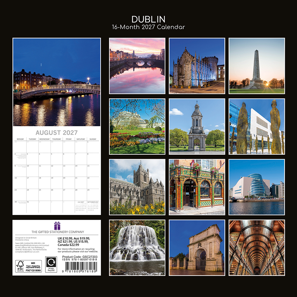 2027 Square Wall Calendar – Dublin