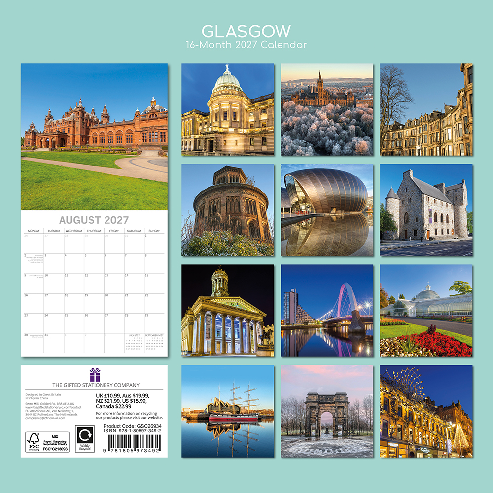 2027 Square Wall Calendar – Glasgow