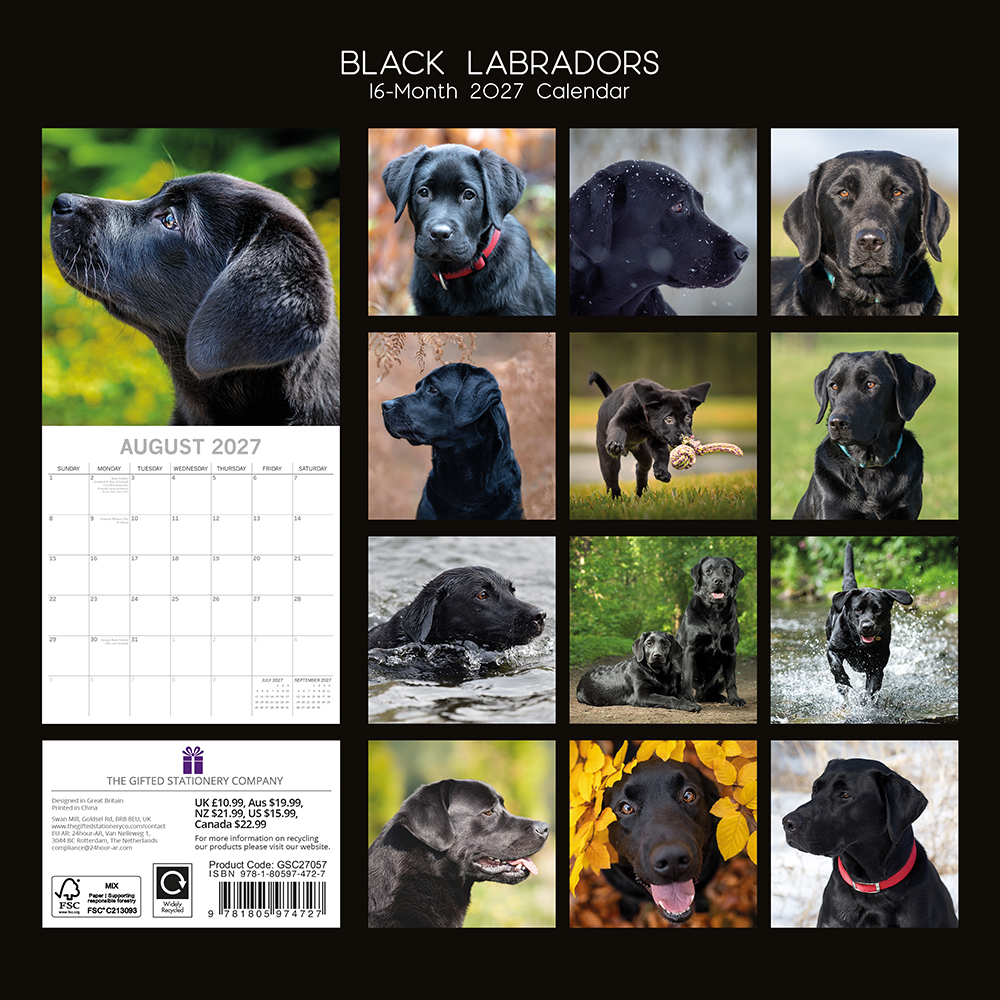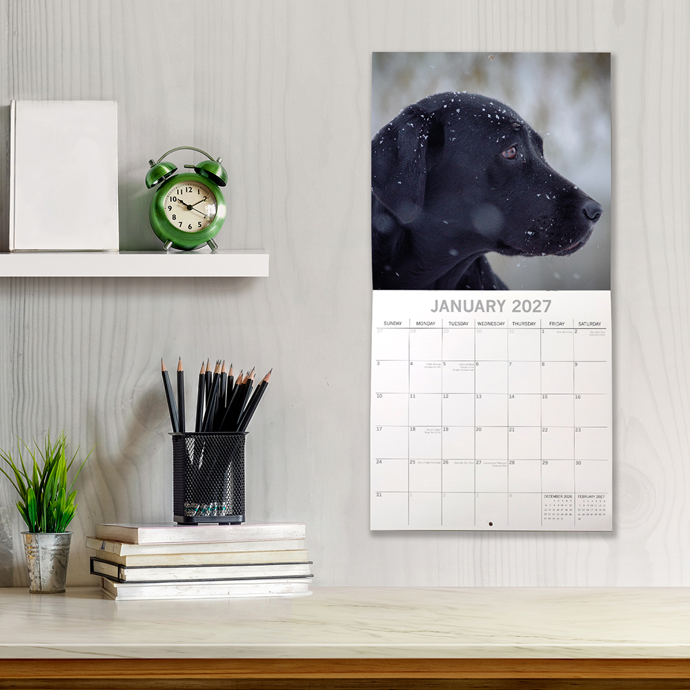 2027 Square Wall Calendar – Labradors (Black)