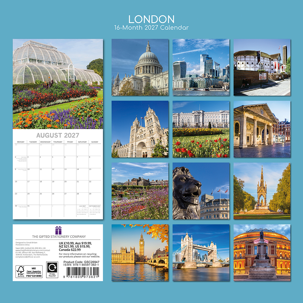 Wall Calendar. 100% Plastic free and 100% recyclable. Packaged in a 4 colour printed gift envelope Size: 305 x 305 mm