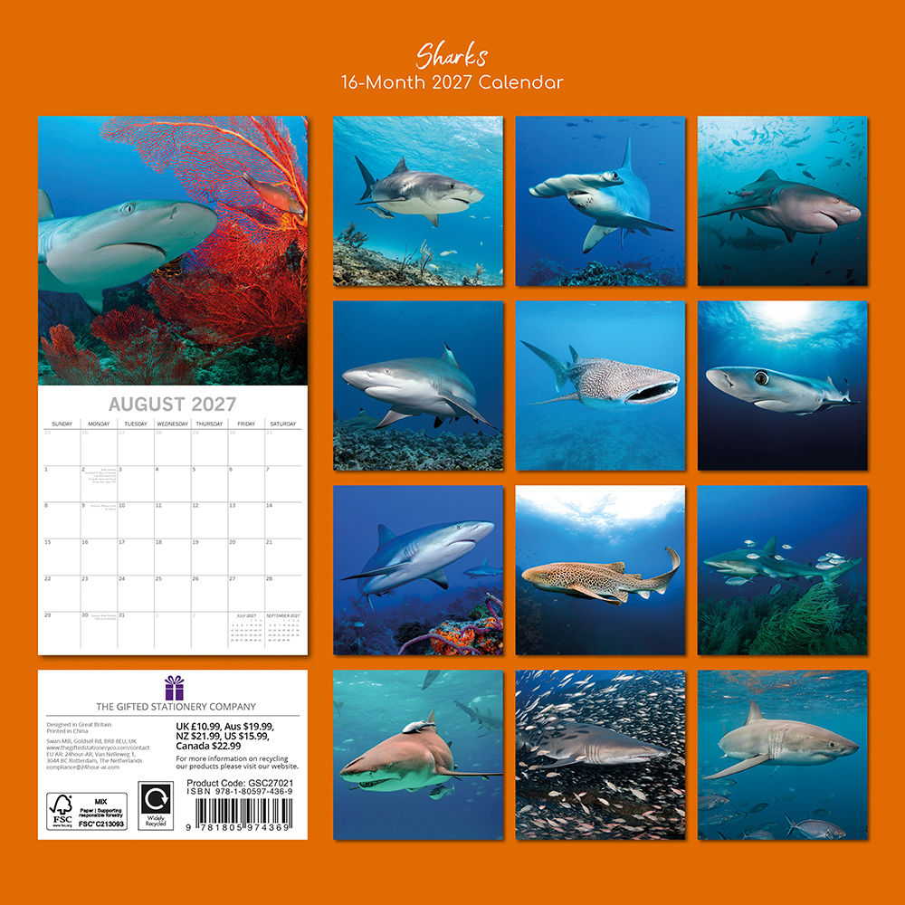 2027 Square Wall Calendar – Sharks