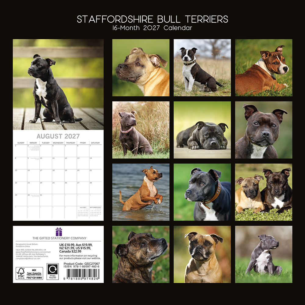 2027 Square Wall Calendar – Staffordshire Bull Terriers
