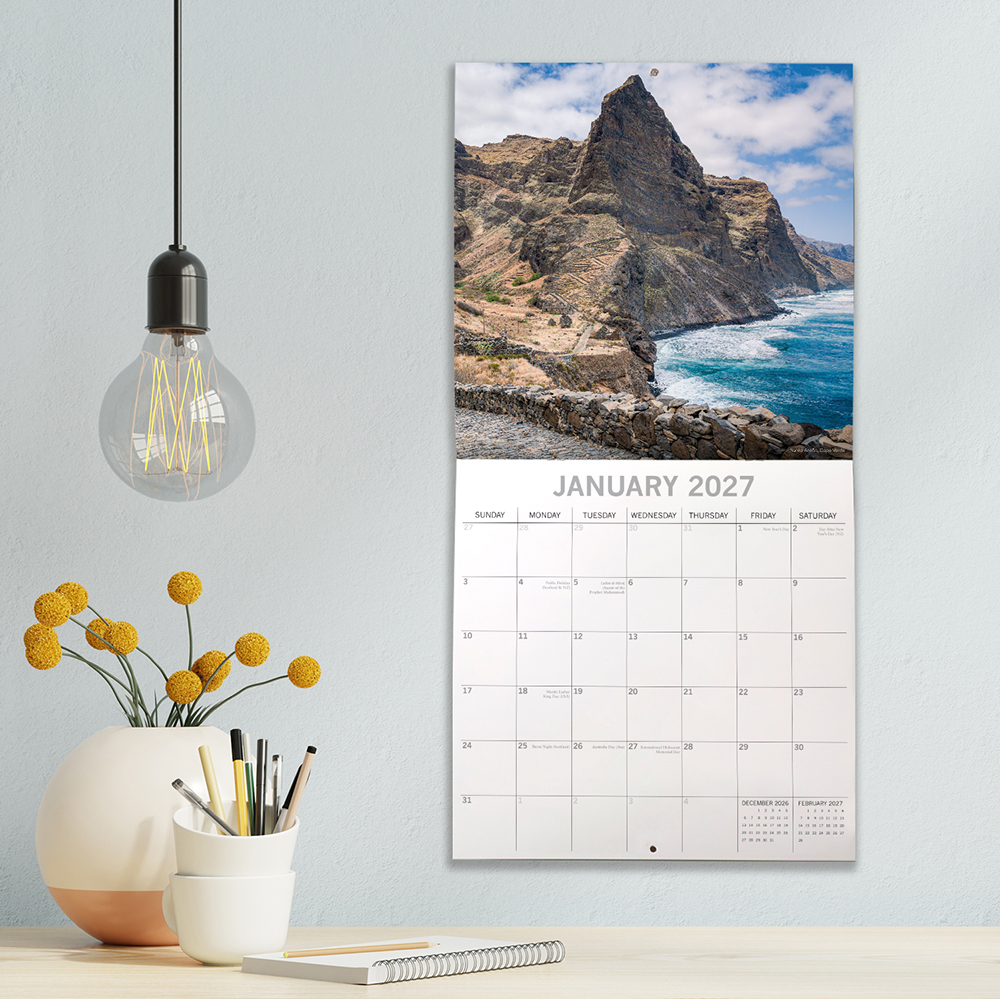 Wall Calendar. 100% Plastic free and 100% recyclable. Packaged in a 4 colour printed gift envelope Size: 305 x 305 mm