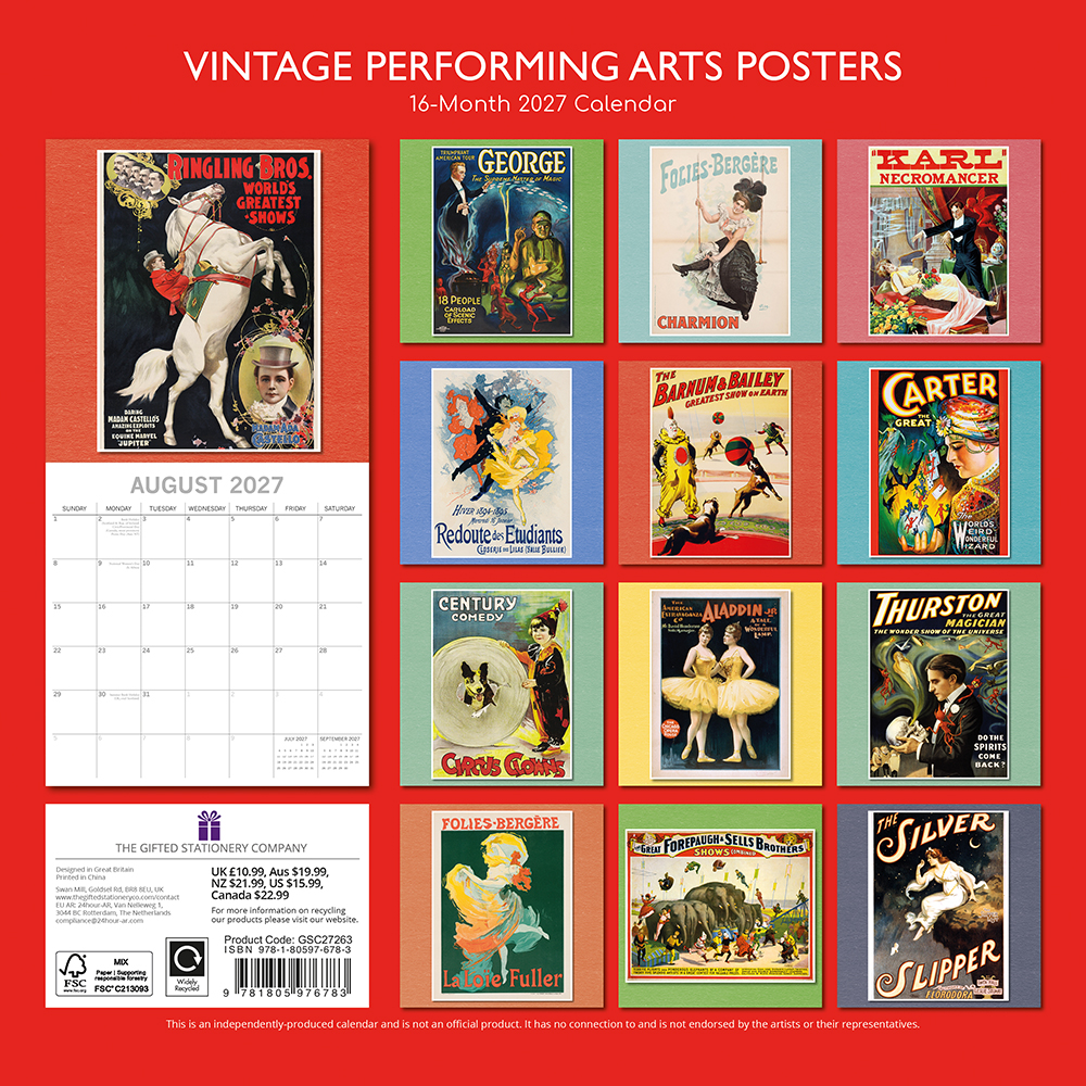 2027 Square Wall Calendar – Vintage Performing Arts Posters