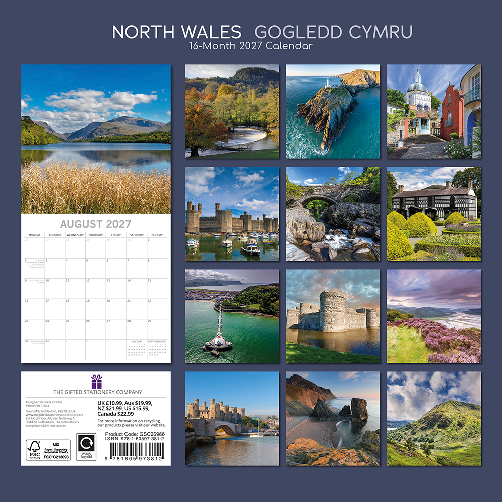 2027 Square Wall Calendar – Wales (North)