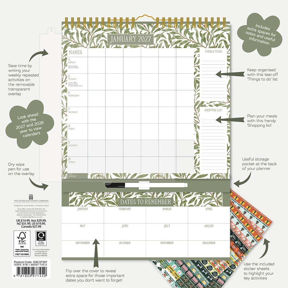 2027 William Morris Weekly Family Planner