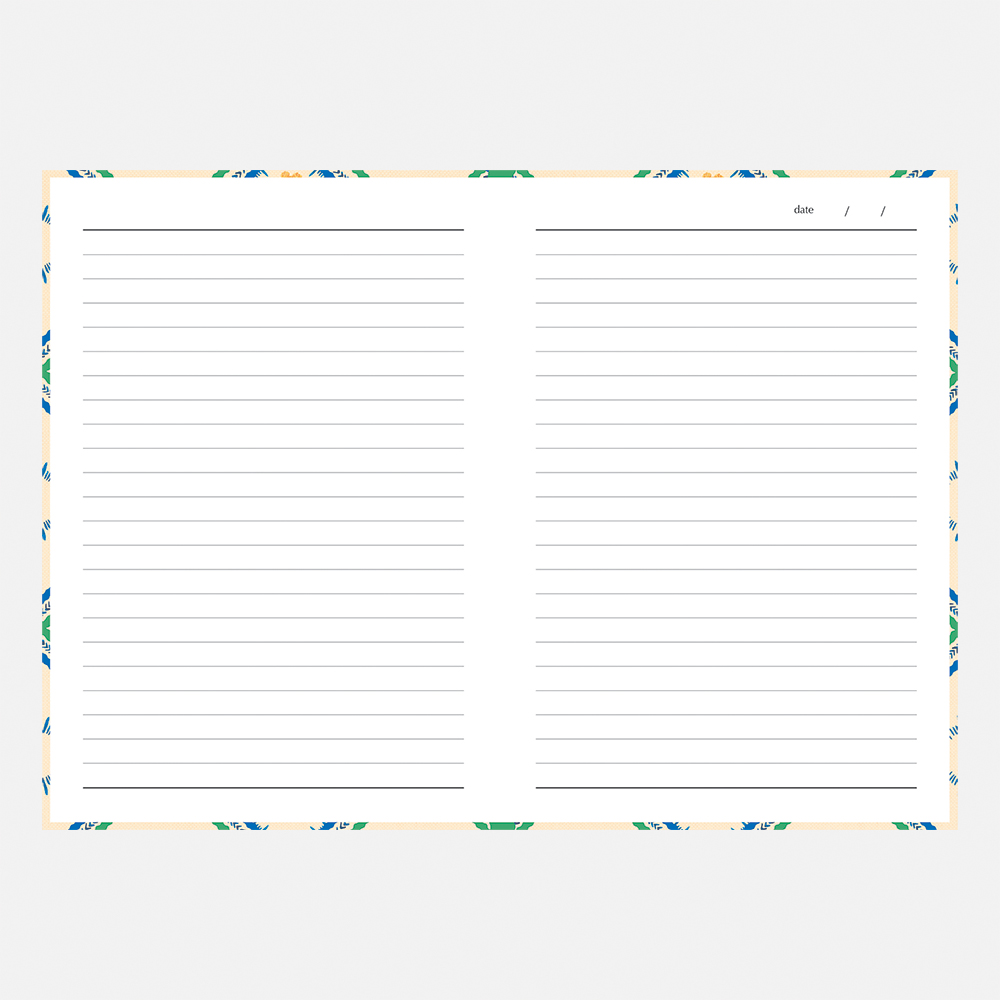 Give yourself a quiet moment with our beautifully designed notebooks perfect for writing, taking notes, journaling, making lists and much much more! Our flexi-bound notebook has 176 sheets of ruled white paper, colour printed on the side edges with an elastic closure.