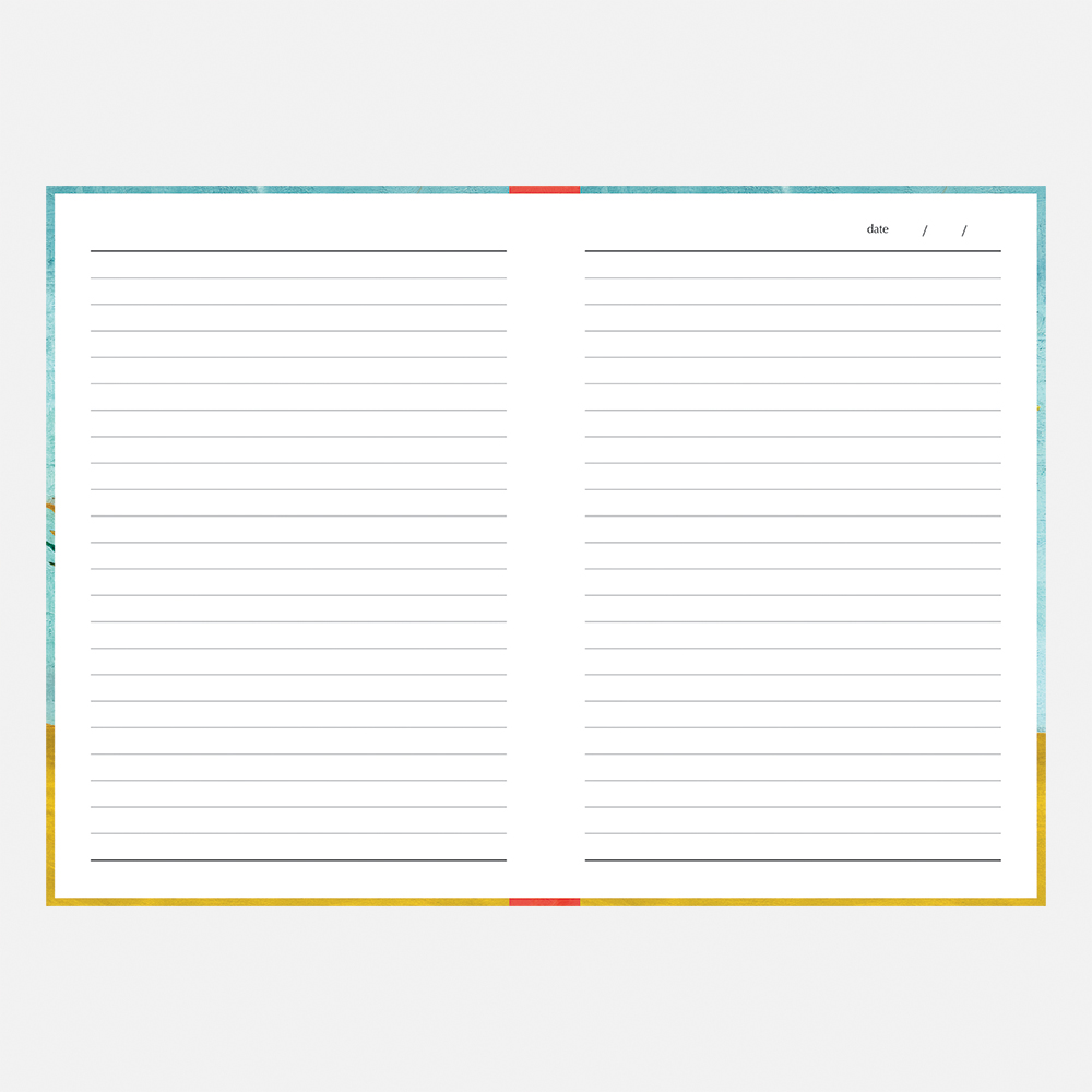 Give yourself a quiet moment with our beautifully designed notebooks perfect for writing, taking notes, journaling, making lists and much much more! Our flexi-bound notebook has 176 sheets of ruled white paper, colour printed on the side edges with an elastic closure.
