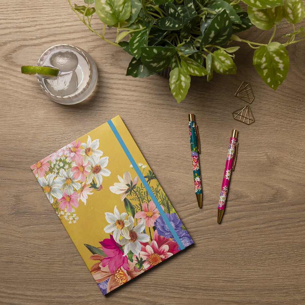 Give yourself a quiet moment with our beautifully designed notebooks perfect for writing, taking notes, journaling, making lists and much much more! Our flexi-bound notebook has 176 sheets of ruled white paper, colour printed on the side edges with an elastic closure.