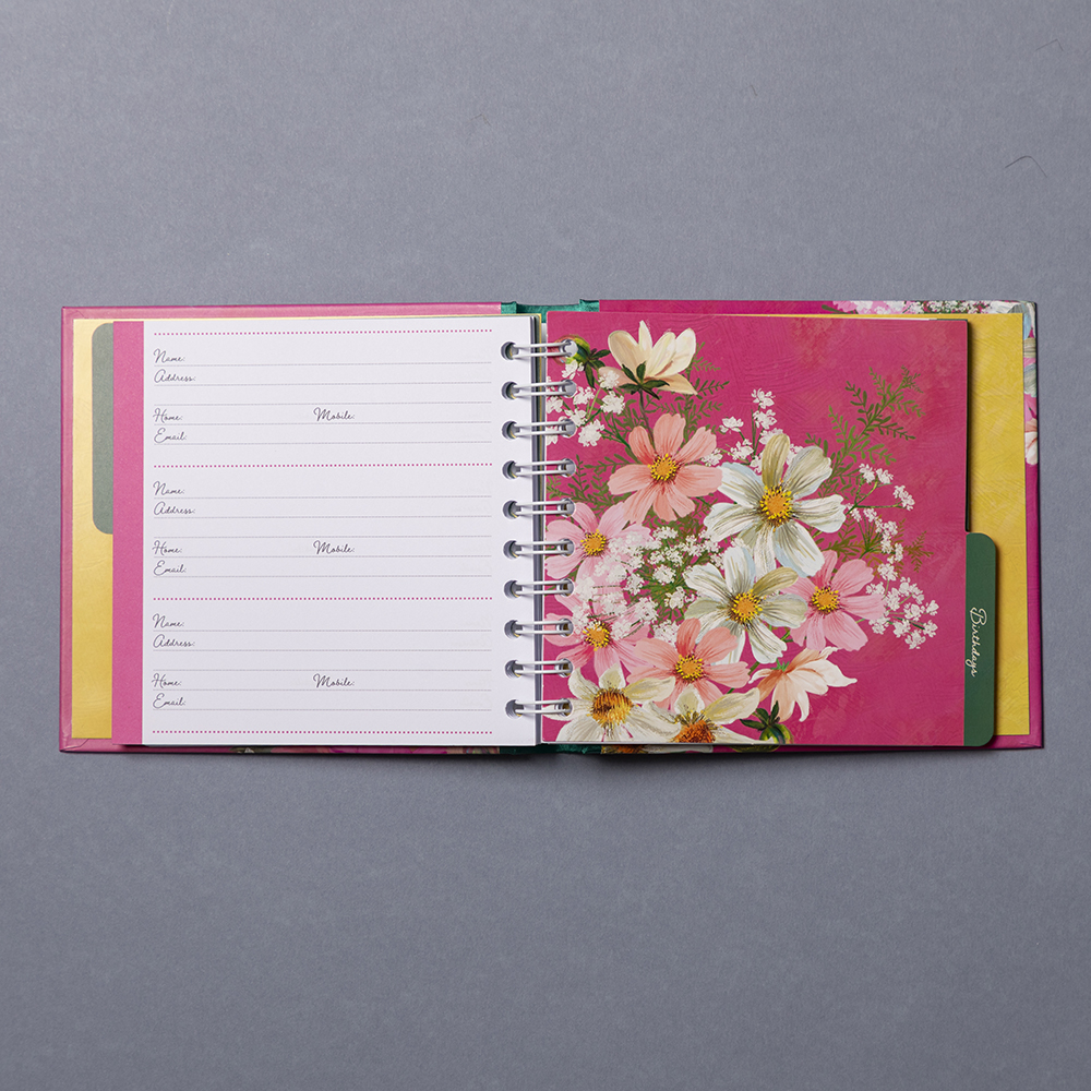 This stylish book is ideal for storing addresses alongside keeping track of those important dates and birthdays. Our stunning address and birthday books have cloth-covered spiral-binding, 100 sheets of address sections and 100 sheets of birthday sections divided by 2 beautifully designed tab dividers.