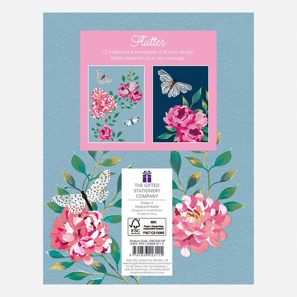 Always have the perfect greeting card at the ready with our notecard wallets containing 12 notecards across 4 different stunning designs. Each notecard is blank inside and accompanied by a white envelope. Card size 126 x 176mm.